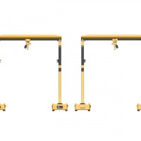 OMV智能龍門吊由兩臺獨立的全向平臺轉運車上安裝龍門吊組成,兩臺平臺轉運車具有雙車聯動功能,共同托舉龍門吊吊裝物料進行前進、后退、橫移、斜行、旋轉等全方位任意方向移動。