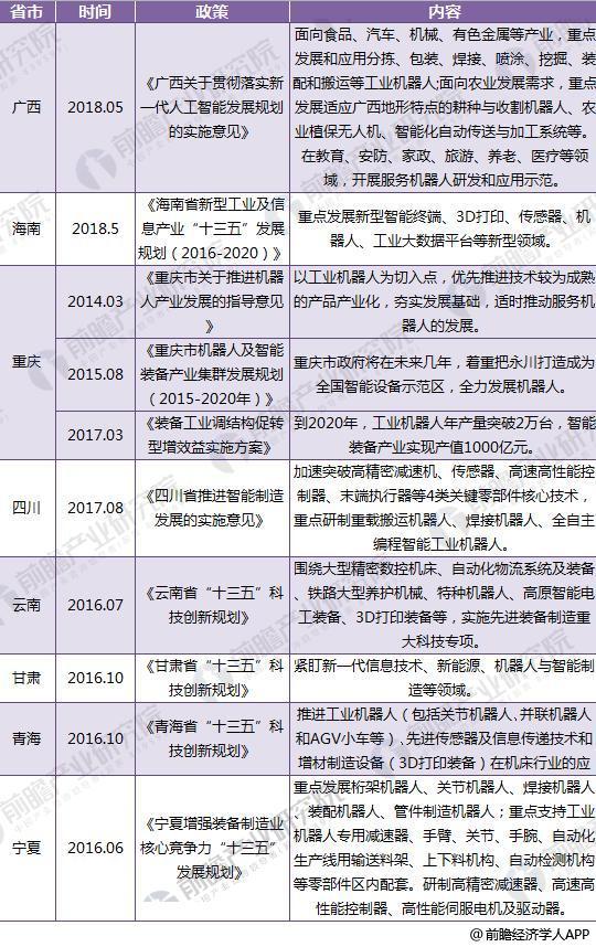 圖表4:截至2018年31省市機器人相關(guān)政策匯總(三)