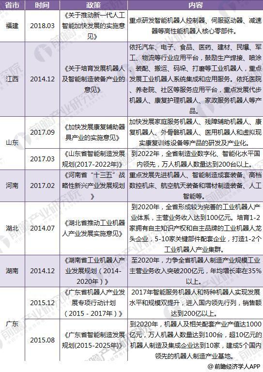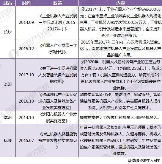 截至2018年,有14個地級市出臺機器人產(chǎn)業(yè)發(fā)展和加大科研投入建立智能型機器人研發(fā)機構(gòu)的相關(guān)政策和獎勵機制,包括廣州、佛山、東莞、嘉興、泉州、長沙等。