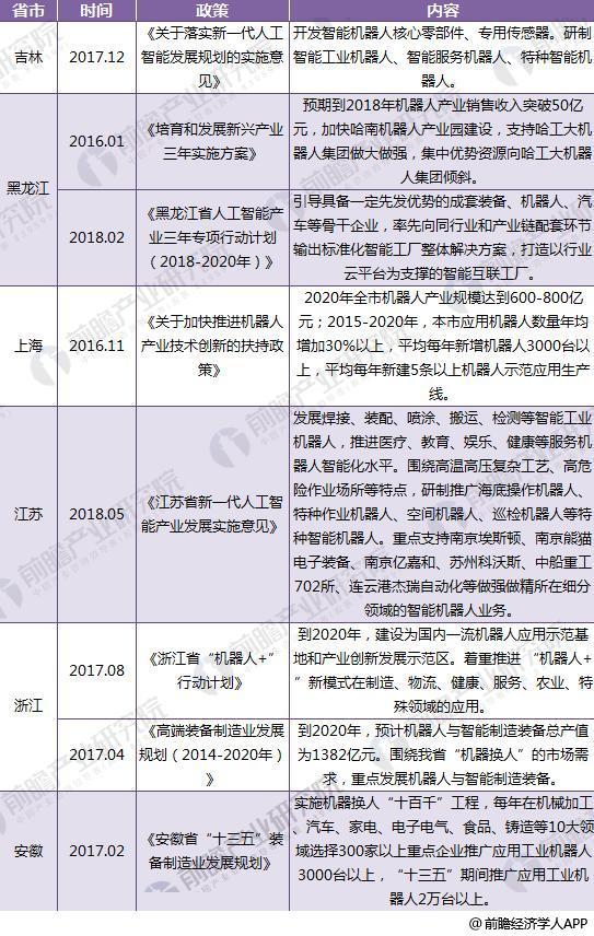 國家政策先行,地方政策迅速跟進:2016年以來,我國各省市圍繞“機器人”發(fā)布了多項產(chǎn)業(yè)促進政策,尤其是北京、天津、遼寧、上海、浙江等10個省市出臺了機器人相關(guān)的產(chǎn)業(yè)規(guī)劃。