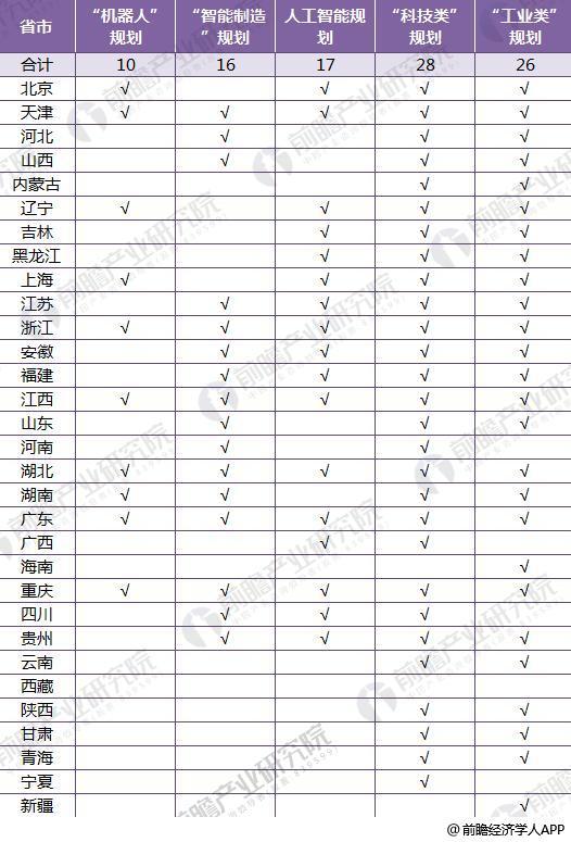 圖表6:各省市涉及到機器人的相關(guān)規(guī)劃匯總