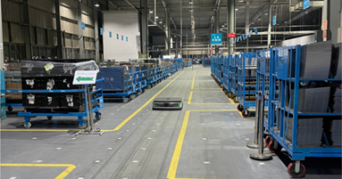 KUKA AMR系統(tǒng)針對客戶現(xiàn)場情況,專門設(shè)立與高沖自動物流線Robot arm的對接區(qū)域,打通了高沖自動物流與倉庫存儲之間的自動化連接流程,實現(xiàn)物料自動入庫,不僅提高運輸準(zhǔn)確率,同時減少用工成本;
