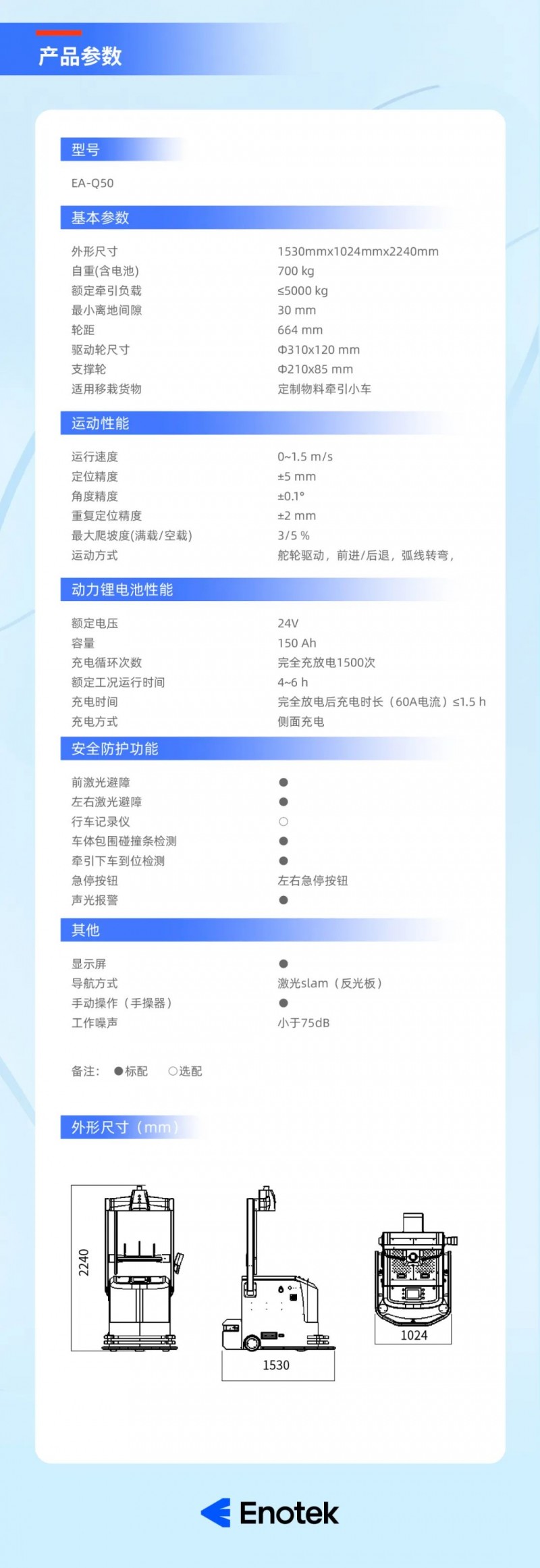 牽引式AGV EA-Q50詳細參數,請參見以下參數表: