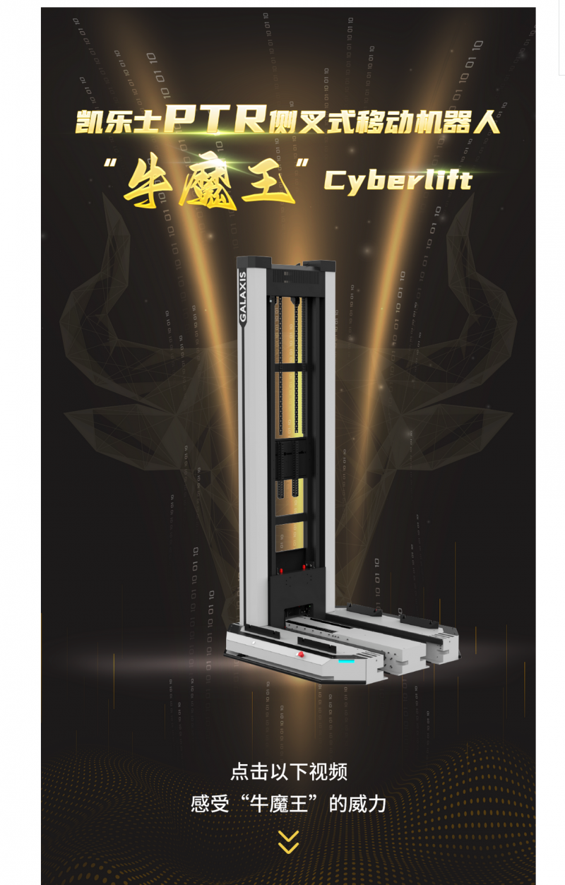 核心提示:凱樂士PTR側叉機器人牛魔王CyberliftPTR側叉機器人Cyberlift牛魔王名號由來很牛:以創新設計填補行業空白,為托盤存儲、搬運開辟