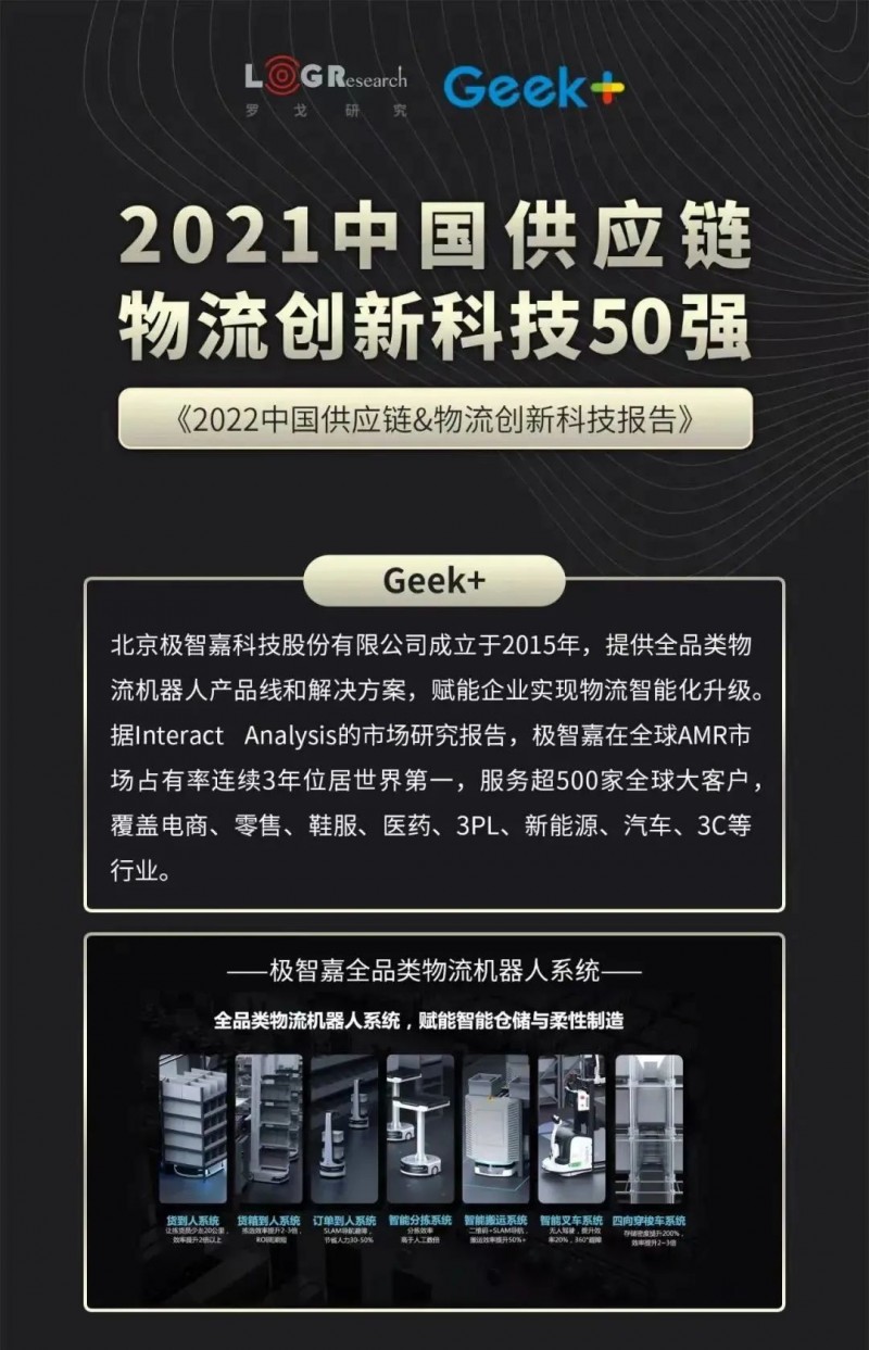 作為全球AMR引領(lǐng)者,極智嘉(Geek+)憑借其領(lǐng)先的一站式RoboShuttle+P40全流程組合方案實力斬獲“智東西·2021年度AI生產(chǎn)力創(chuàng)新獎”和“羅戈網(wǎng)·2021中國供應(yīng)鏈物流創(chuàng)新科技50強”兩大行業(yè)重磅獎項,充分彰顯了行業(yè)領(lǐng)跑者的創(chuàng)新技術(shù)實力!