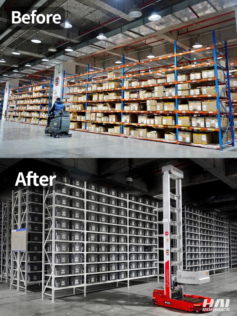 針對利豐供應鏈倉庫存儲密度低,存儲壓力大的痛點,海柔創新部署HAIPICK A42箱式倉儲機器人搭配立體貨架的組合存儲方式,其中立體貨架高度可高達4.3米。此外,由于ACR的產品設計理念是貨箱到人,對比潛伏式移動機器人機身設計更窄,使得貨架之間的巷道面積得以進一步縮小,從而提升存儲密度。改造后的前海