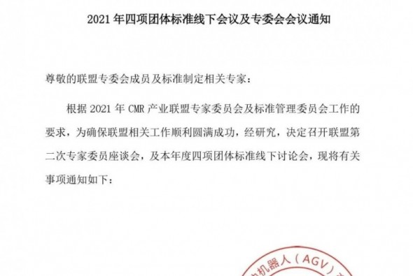 關于召開工業應用移動機器人2021年四項團體標準線下會議及專委會會議的通知