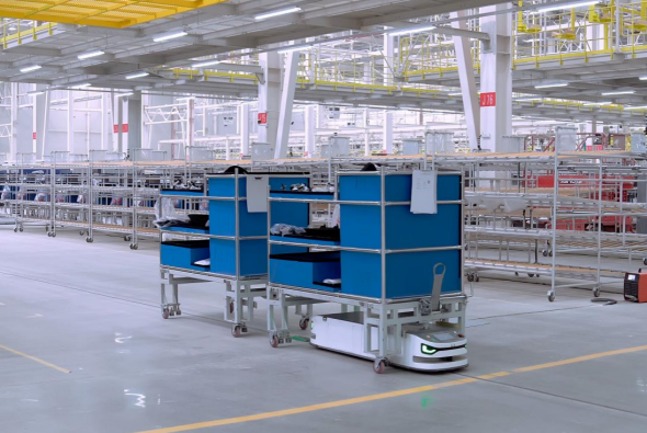 以AGV為核心,配合多種自動化設備,串連各個生產環節。