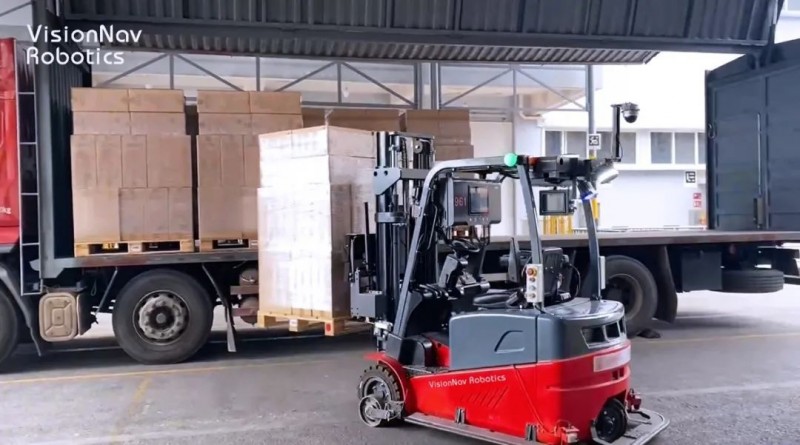 面對此次項目,未來機器人派出VNE20室內外平衡重無人叉車應戰(zhàn),以匹配室內外環(huán)境下的無人搬運需求。遇到室內外復雜場景時,VNE20無人叉車通過配置3D激光混合視覺導航SLAM,提取環(huán)境圖像信息,同步定位并創(chuàng)建自然特征地圖,精準識別環(huán)境信息,同時結合智能算法與仿真建模計算,沉淀項目數(shù)據(jù),從無人叉車行駛速度、加速度、貨叉舉升高度等方面進行不斷調整優(yōu)化,最終得出裝車效率與安全雙優(yōu)方案,解決項目現(xiàn)場的復雜環(huán)境難題。