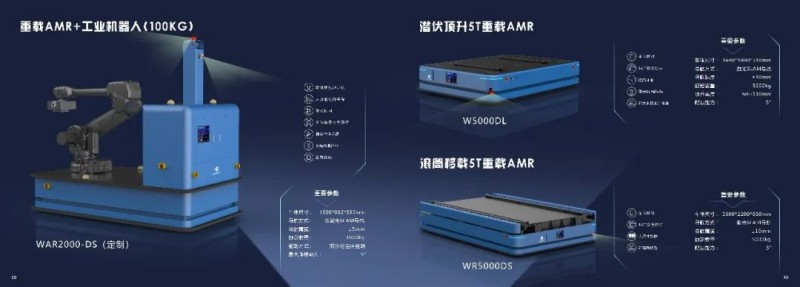 近期,為適應(yīng)更多的應(yīng)用場(chǎng)景,井智機(jī)器人自主研發(fā)的重載AMR (Heavy-duty AMR)全面上線。井智機(jī)器人的重載AMR利用OMS、WMS、TMS、FMS,能夠協(xié)助客戶實(shí)現(xiàn)數(shù)字化、智能化的產(chǎn)業(yè)升級(jí)。如圖示的WR5000DS,負(fù)載最高可達(dá)到5000KG,產(chǎn)品定位精確,行駛路徑靈活多變,滾筒移載柔性化程度高,可快速全局部署,適合多種現(xiàn)場(chǎng)環(huán)境。