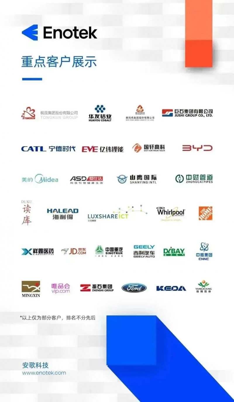 除此之外,安歌科技至今已為桐昆股份、中國巨石、中國重汽、國軒高科、比亞迪等化纖、玻纖、新能源、新材料、汽車零配件、造紙、電子電器、食品飲料等打造了100+案例,收獲了來自各領(lǐng)域頭部企業(yè)的認可。