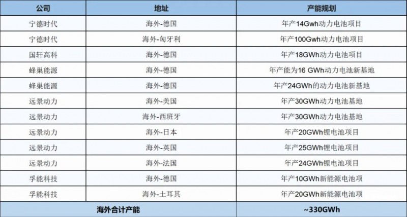 全國動力與儲能電池基地產能統計表5---海外地區(qū)