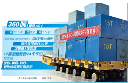 朗譽機器人360噸重載AGV近期成功下線,該產(chǎn)品能實現(xiàn)升降行程300mm,最大承載360噸,最大運行速度30m/min,爬坡能力5°,續(xù)航時間大于8小時,充電時間只需要3小時,控制方式為遙控駕駛,后期可以做無人駕駛升級,防護等級為IP66,并獲得歐洲CE安全認(rèn)證的重載AGV。
