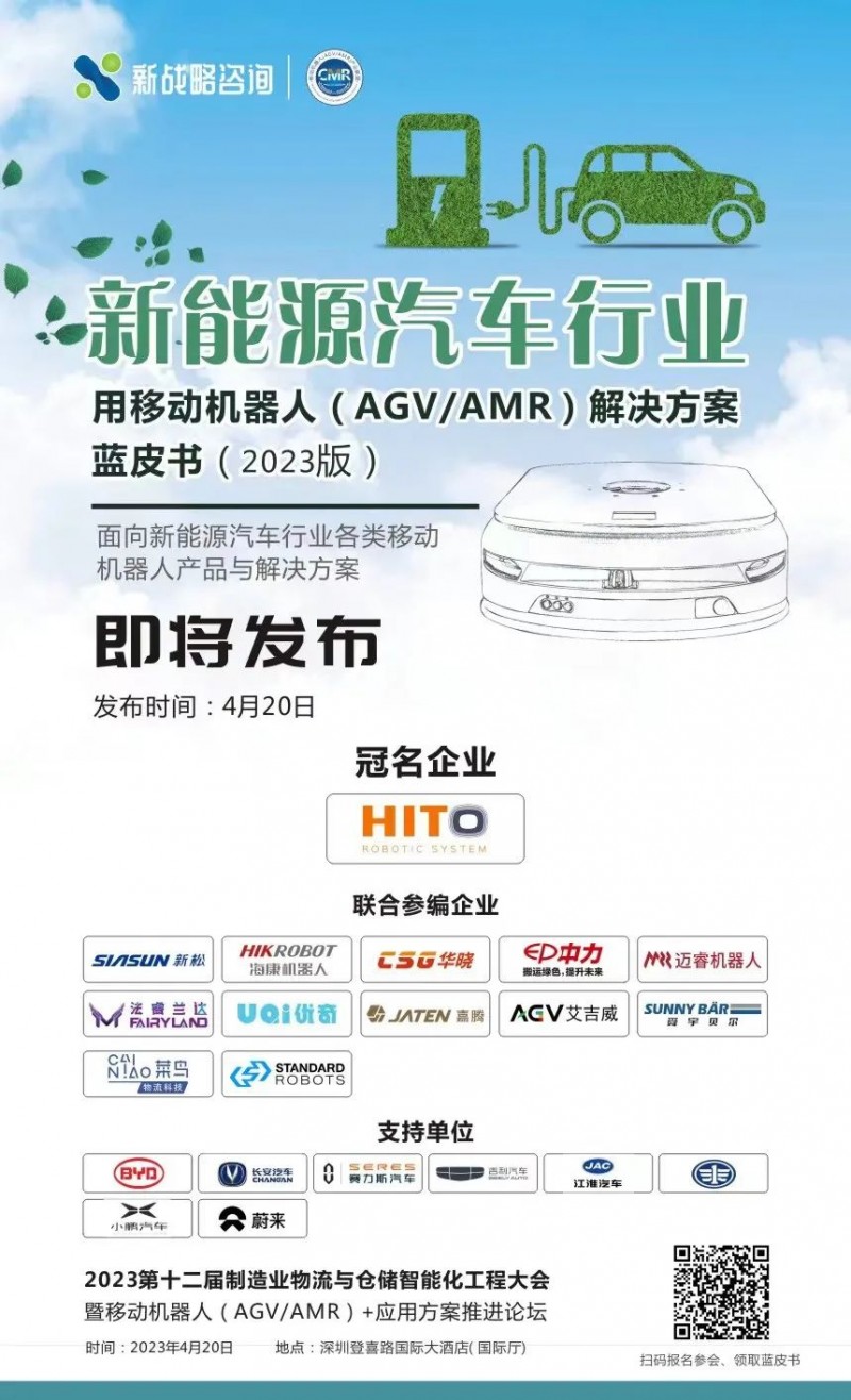 《新能源汽車行業(yè)用移動(dòng)機(jī)器人(AGV/AMR)解決方案藍(lán)皮書(2023版)》是CMR產(chǎn)業(yè)聯(lián)盟與新戰(zhàn)略移動(dòng)機(jī)器人產(chǎn)業(yè)研究所聯(lián)合出版的關(guān)于新能源汽車行業(yè)工業(yè)移動(dòng)機(jī)器人(AGV/AMR)產(chǎn)品應(yīng)用現(xiàn)狀、市場(chǎng)痛點(diǎn)、技術(shù)路線、主流企業(yè)、發(fā)展趨勢(shì)等詳細(xì)內(nèi)參的藍(lán)皮書。藍(lán)皮書將面向全行業(yè)發(fā)行,重點(diǎn)向新能源汽車本體制造商、集成商、軟件服務(wù)商、政府投研等領(lǐng)域發(fā)行。