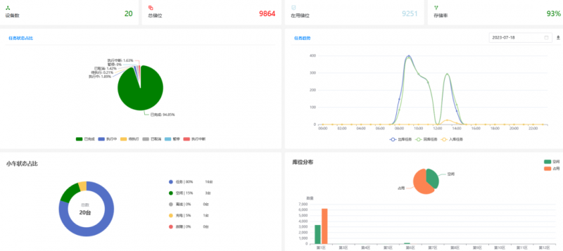 直觀易用的界面讓用戶能夠實時監控機器人的運行狀態、任務執行情況和異常處理情況等重要信息。通過可視化界面,用戶可清晰地了解每臺機器人的當前位置、速度、電量及任務執行情況等關鍵指標。