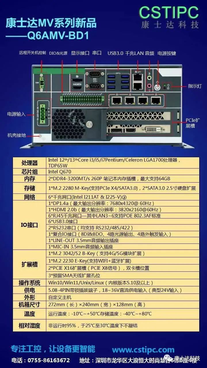 揀選是倉儲物流中勞動密集的作業(yè)環(huán)節(jié),由于自動分揀系統(tǒng)連續(xù)、大批量的分揀貨物特性,設(shè)備需要不斷精準(zhǔn)地長時(shí)間運(yùn)行。康士達(dá)Q6AMV工控機(jī)憑借性能強(qiáng)大、耐用性強(qiáng)、穩(wěn)定性好、精準(zhǔn)性高等優(yōu)勢助力整個(gè)物流分揀系統(tǒng),幫助物流分揀設(shè)備打造穩(wěn)定高效的控制裝置。Q6AMV相較于8代處理器方案,性能的極大提升,讓客戶無需額外顯卡輔助,能直接處理多路3d相機(jī)數(shù)據(jù),并完成相關(guān)的后期處理。