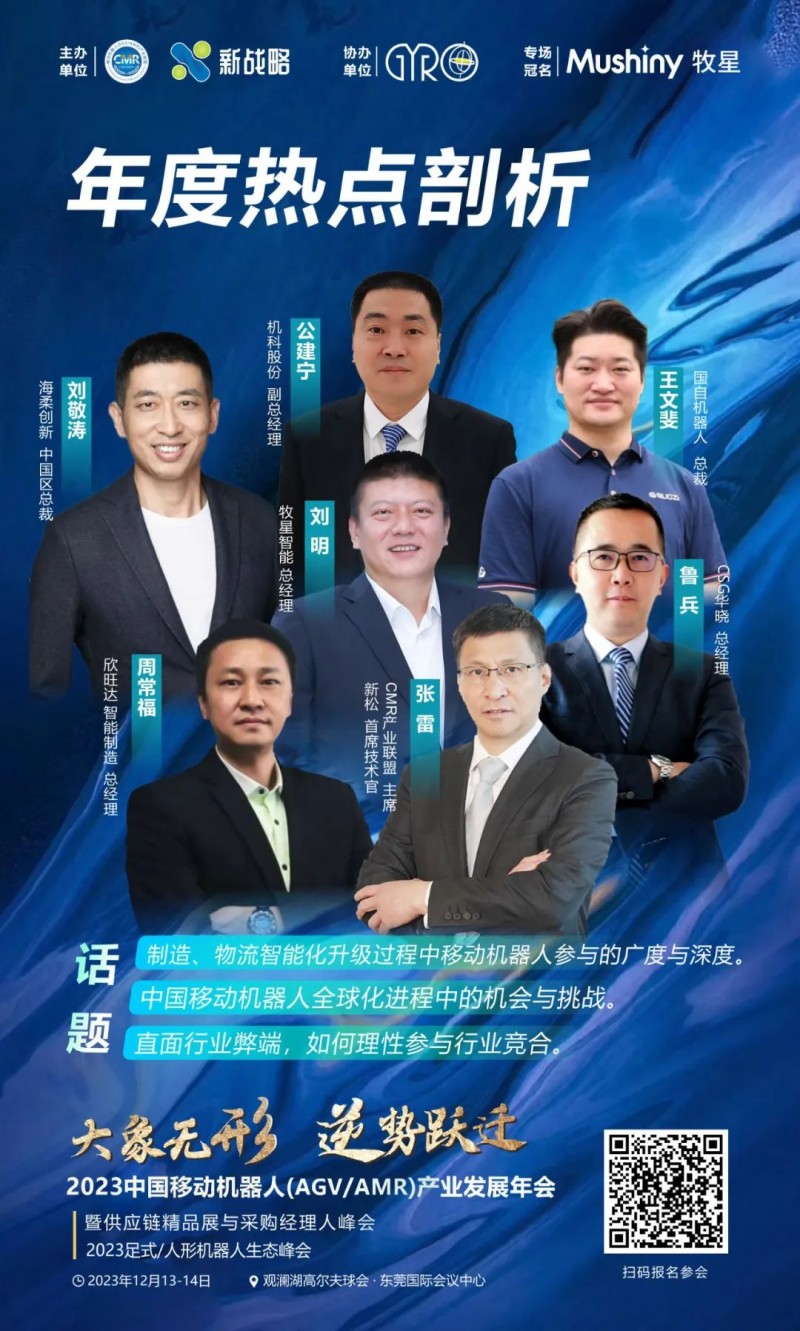 中國的移動機器人產業(yè)正在不斷探索中前進。由移動機器人產業(yè)聯(lián)盟主辦、捷螺智能設備(蘇州)有限公司協(xié)辦的“2023 中國移動機器人(AGV/AMR)產業(yè)發(fā)展年會 ”將于2023年12月12-14日在廣東·東莞召開。此次會議上特別設立了三場圓桌討論,以多元化的主題與方式展現(xiàn)行業(yè)的深度洞察和最新思考,與行業(yè)最優(yōu)秀的踐行者共同探索移動機器人未來!