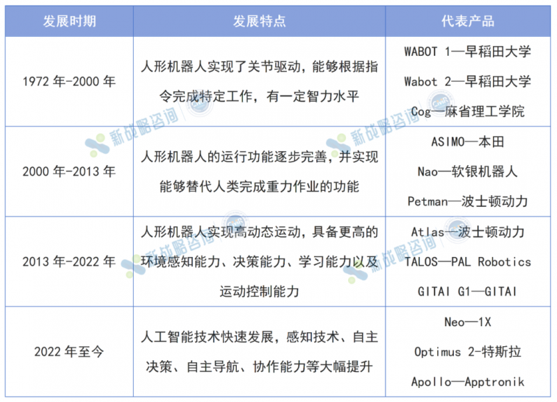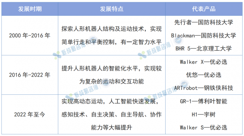 相比日美等發(fā)達(dá)國(guó)家,中國(guó)加入人形機(jī)器人賽道較晚。2000年,國(guó)防科技大學(xué)成功研制出中國(guó)第一臺(tái)兩足步行人形機(jī)器人“先行者”。“先行者”可以模擬人類(lèi)行走,且具備一定的語(yǔ)言功能。此后,國(guó)內(nèi)的高校和科研機(jī)構(gòu)不斷進(jìn)行相關(guān)技術(shù)探索,在運(yùn)動(dòng)控制、感知識(shí)別和智能化方面取得了一些進(jìn)展。2016年,優(yōu)必選開(kāi)始研發(fā)大型人形機(jī)器人,并于2018年推出Walker第一代。Walker是中國(guó)首臺(tái)可商業(yè)化人形雙足機(jī)器人,在五年內(nèi)歷經(jīng)四次迭代,具有高度的運(yùn)動(dòng)靈活性和智能交互能力。