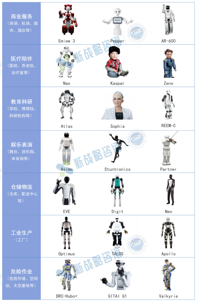 注:圖中多款人形機(jī)器人可用于多個(gè)應(yīng)用場(chǎng)景