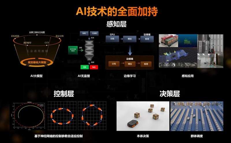 “在這IT系統的基礎上,我們構建了智能裝備層,其中包含以機器視覺為主的工業傳感器、自動化器材和各類智能設備、移動機器人,包括未來的人形機器人等各種執行機構,它們能實時收集生產數據,為后續的分析優化決策提供依據。”