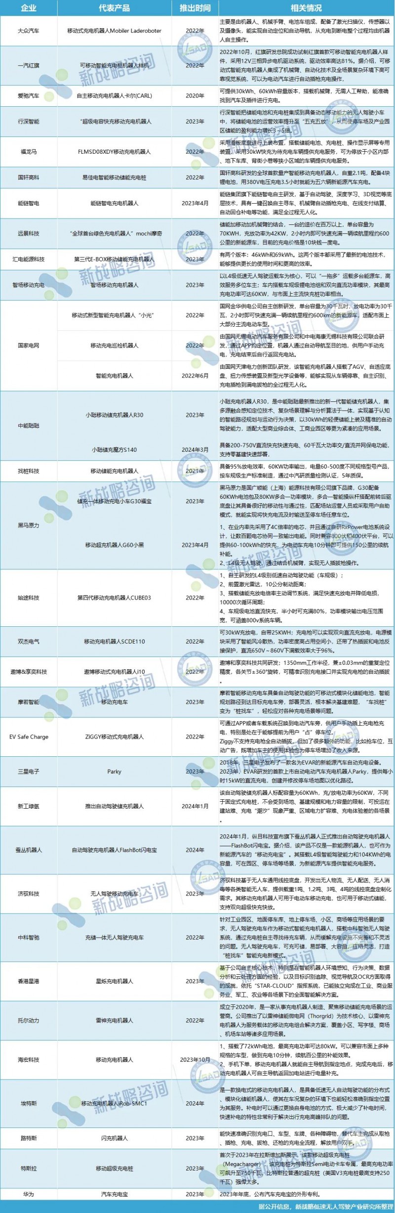 國內部分移動充電機器人企業及產品相關情況