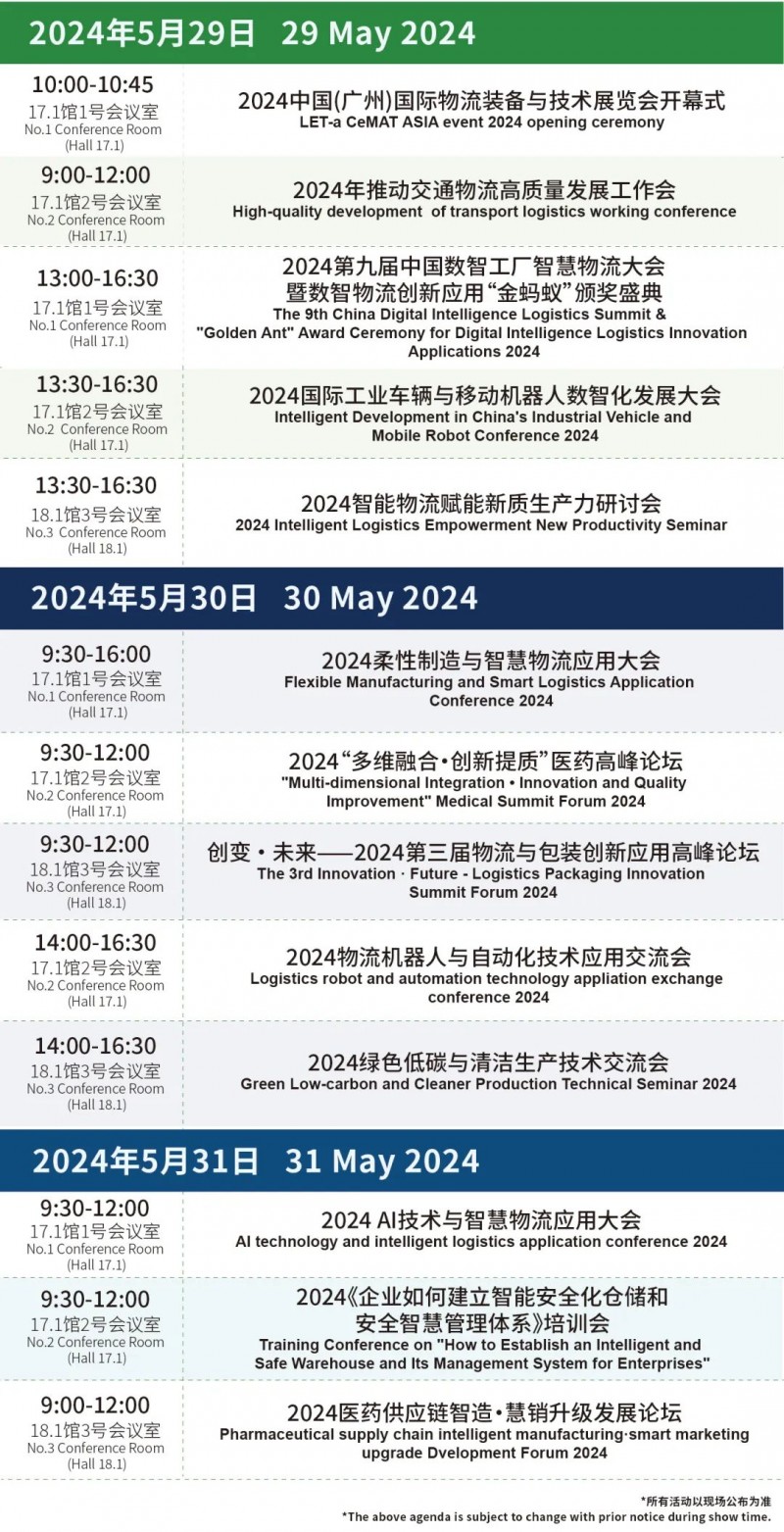 LET 2024將舉辦近20場高質(zhì)量同期活動,與物流大咖、資深人士共同探討2024破“卷”之道,重磅品牌活動——第9屆數(shù)智物流創(chuàng)新應(yīng)用"金螞蟻"頒獎盛典將于展會首日重磅來襲。三天展期活動主題覆蓋新質(zhì)生產(chǎn)力、柔性制造、AI技術(shù)應(yīng)用、移動機器人、物流機器人、智能包裝、醫(yī)藥物流、綠色低碳等熱門領(lǐng)域。