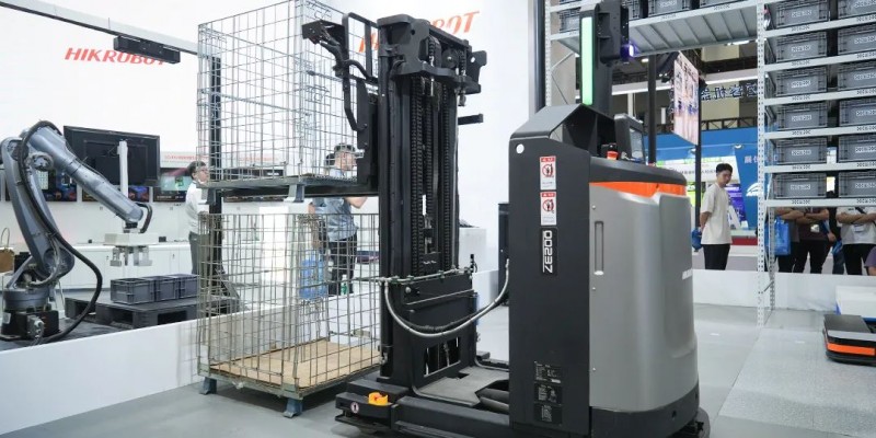 本次展會(huì)展出的是海康機(jī)器人全新一代的前移式叉取機(jī)器人,前移門架的設(shè)計(jì),減少運(yùn)載空間,提高運(yùn)載速度。同時(shí)具備物料識(shí)別功能,可適配各種類型載具。取放精度高,支持物料自動(dòng)堆疊和拆垛,提高作業(yè)效率。