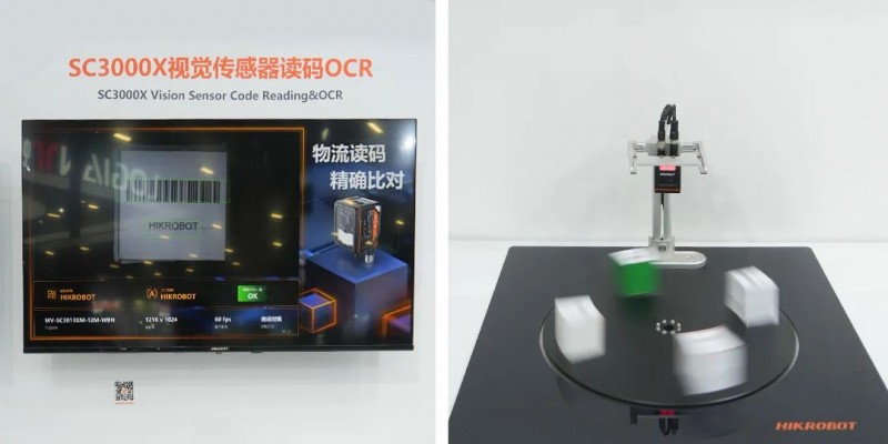 該相機(jī)集成像、算法、存儲(chǔ)、通信于一身,內(nèi)部嵌入了讀碼、有無(wú)、正反、測(cè)量、識(shí)別和計(jì)數(shù)等防錯(cuò)檢測(cè)算法,充分保證信息讀取的準(zhǔn)確性。現(xiàn)場(chǎng)展示SC3000X對(duì)物流面單碼和OCR的讀取情況,即便面單在轉(zhuǎn)盤上高速轉(zhuǎn)動(dòng),相機(jī)仍可穩(wěn)定讀取作業(yè),且對(duì)碼和字符進(jìn)行對(duì)比,是3C流通行業(yè)追溯信息的重要保障。