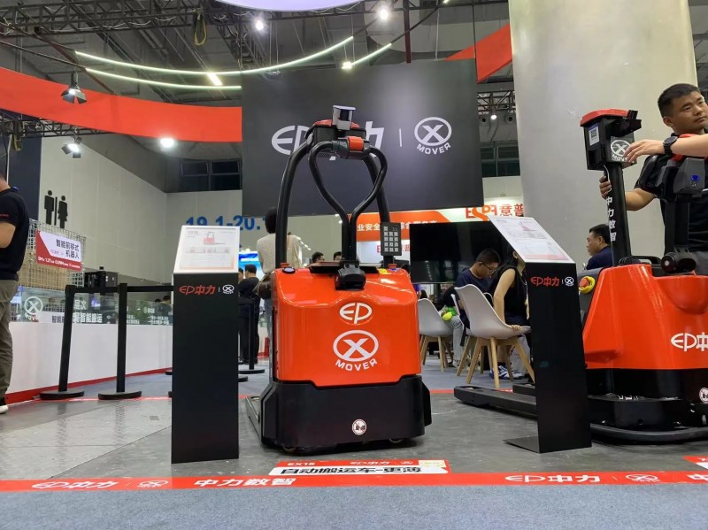 本次展會現場,中力超薄的1.5噸自動搬運車更是引人圍觀,整車自重僅200kg,可充分適合多種類型電梯,各種窄通道搬運使用;同時人機混合作業,安全又高效。