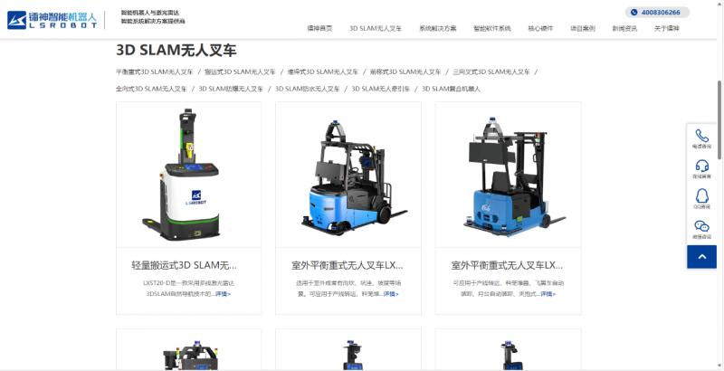 官網(wǎng)精心設(shè)計了3D SLAM無人叉車系列產(chǎn)品矩陣展示區(qū),從輕量搬運式到前移式,再到室外平衡重式無人叉車,全方位覆蓋不同行業(yè)、不同場景的需求。