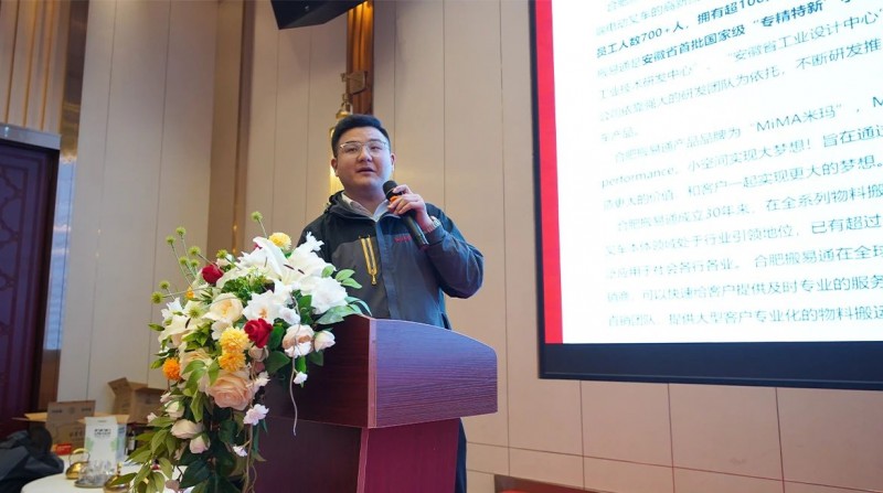 在酒店宣講環(huán)節(jié),合肥搬易通廣州營銷服務(wù)中心負責人侯杰介紹了公司的企業(yè)規(guī)模、發(fā)展歷程、全系列物料搬運設(shè)備以及超窄通道產(chǎn)品,并表明未來團隊將不斷深化對市場動態(tài)與客戶需求的洞察,提升服務(wù)質(zhì)量,力求全方位滿足客戶物料搬運需求。