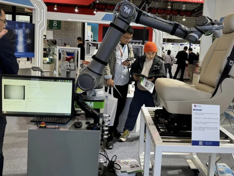 在慕尼黑電子生產設備展(Productronica China)的現場,達明機器人合作伙伴所展示的汽車座椅外觀檢測應用,充分彰顯了視覺飛拍技術在外觀瑕疵檢測方面的優勢。
