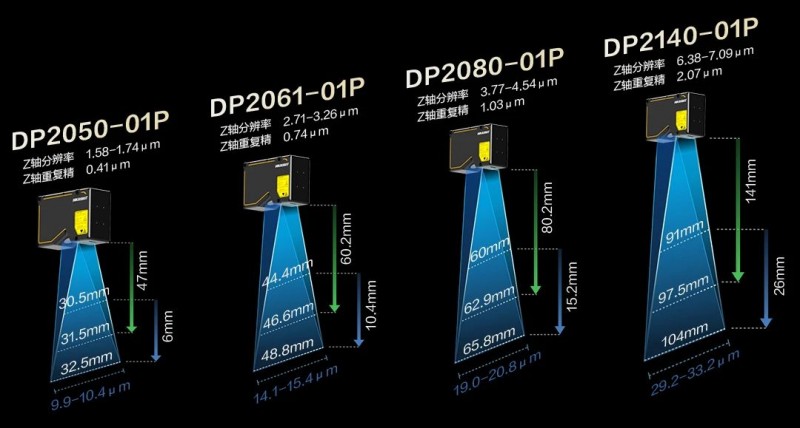 DP2060、DP2120、DP3060、DP3120小視野激光輪廓傳感器新增紅光版本,可以有效解決拼接場景中相同波段干擾的問題,同時,針對小視野檢測場景,小尺寸吸光材質(zhì)的工件也能獲得優(yōu)異成像。