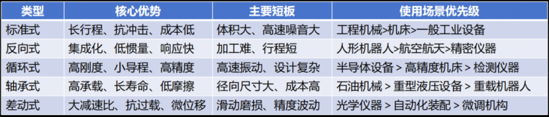 經過長期發展,行星滾柱絲杠已演化出多個結構變體,在傳動效率、承載能力、尺寸適配等方面形成各具優勢的類型。其中,通過對不同結構形式的性能對比與工程適配性分析,目前在人形機器人領域得到廣泛采用的是“反向式”行星滾柱絲杠結構。