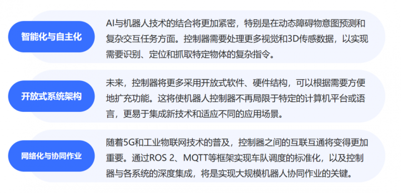 控制器廠商戰(zhàn)略發(fā)力方向,也清晰地勾勒出移動(dòng)機(jī)器人控制器的未來演進(jìn)路徑: