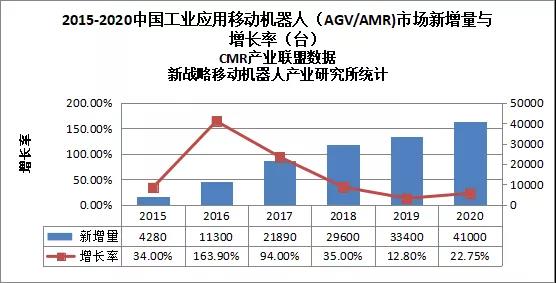 根據中國移動機器人(AGV)產業聯盟、新戰略移動機器人產業研究所的調研,2020年度中國市場新增工業應用移動機器人(AGV/AMR)41000臺,較2019年增長25.7%,市場銷售額達到76.8億元,同比增長24.4%。由此可見,2020年國內移動機器人行業盡管受到了疫情的影響,仍然保持了較好的整體增長態勢。