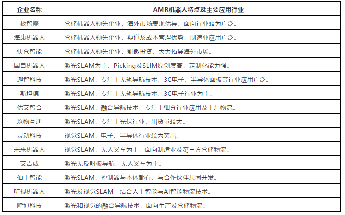 圖表2:國(guó)內(nèi)市場(chǎng)主要做AMR機(jī)器人的企業(yè)(部分代表)