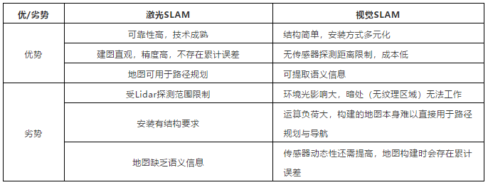 圖表4:激光SLAM和視覺(jué)SLAM優(yōu)劣勢(shì)對(duì)比