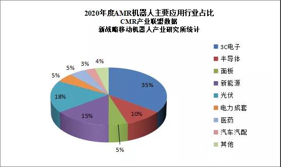 2020年AMR機(jī)器人應(yīng)用主要集中在3C電子、半導(dǎo)體、面板、新能源及光伏、電力成套及醫(yī)藥行業(yè)等制造領(lǐng)域,其中3C電子行業(yè)應(yīng)用規(guī)模最大,占比40%。值得注意的是,2020年AMR機(jī)器人在傳統(tǒng)的汽車市場(chǎng)也有滲透,但占比不大。主要原因在于新興制造業(yè)對(duì)生產(chǎn)線的柔性化要求程度更高,因此AMR在這些領(lǐng)域更受青睞。不過(guò)伴隨著AMR技術(shù)的進(jìn)一步成熟以及制造業(yè)產(chǎn)業(yè)升級(jí)的加速,未來(lái)AMR機(jī)器人將逐漸向更廣闊的市場(chǎng)延伸。