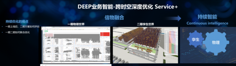 在持續(xù)優(yōu)化方面,Service+通過讓一期物理世界和二期孿生世界,實(shí)現(xiàn)信物融合,從而獲得持續(xù)智能,解決了二期方案評(píng)估,以及一期二期聯(lián)合優(yōu)化的問題。