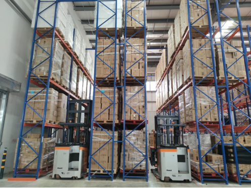 此方案中,使用的卓一三向堆垛車VDA11675,巷道寬度僅需1650MM,跟傳統(tǒng)的堆垛車相比可以減少約1150MM的通道距離出來,整個(gè)倉庫規(guī)劃下來可以多出多排貨架,極大的提高了倉庫的存儲(chǔ)庫位數(shù),提升了整體的存儲(chǔ)效率。