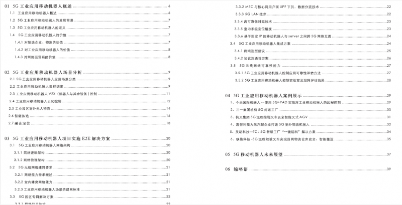 本藍(lán)皮書從5G工業(yè)應(yīng)用移動(dòng)機(jī)器人的發(fā)展背景出發(fā),給出5G工業(yè)應(yīng)用移動(dòng)機(jī)器人的定義和價(jià)值,分析各種應(yīng)用場(chǎng)景對(duì)網(wǎng)絡(luò)的需求,從架構(gòu)、網(wǎng)絡(luò)、終端提出5G工業(yè)應(yīng)用移動(dòng)機(jī)器人可落地的解決方案,闡述可靠性能力,并給出各個(gè)應(yīng)用場(chǎng)景落地實(shí)施的建議,幫助產(chǎn)業(yè)鏈各方共同推進(jìn) 5G 智慧物流發(fā)展。