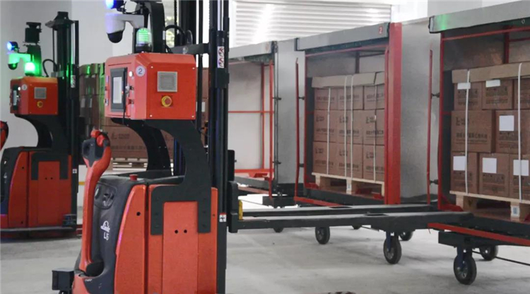 在生產系統的任務下,AGVS調度系統與WCS、WMS實時通訊,智能調度復雜場景不同車型之間的交互配合。戶外牽引AGV完成前端物流配送后,無人叉車聯動叉取在戶外牽引AGV料架上的貨物,并與立體倉庫中的輥筒線系統對接完成貨物到輥筒線上的碼放動作,隨后堆垛機接收系統指令,完成一拖物料的入庫數據鏈。出庫至發貨環節上,再由無人叉車完成最后一公里的搬運任務并實時反饋工作狀態至系統存儲分析,即“無人”物流閉環模式成型。