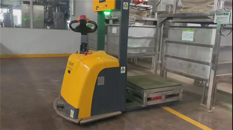 客戶現(xiàn)場精準度要求極高,為保證物料放置精度,每臺AGV配置視覺相機,通過視覺定位,保證物料放置位置精準度,達到了與其他設(shè)備的精準對接