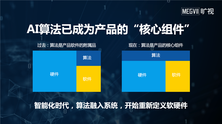 過去,算法只是產(chǎn)品軟件的附屬品,往往在硬件設(shè)計(jì)好后才去構(gòu)建軟件。在創(chuàng)新智能產(chǎn)品的研發(fā)過程中,曠視發(fā)現(xiàn),產(chǎn)品的易用度、特性很大程度上是由算法決定的。因此,需要在產(chǎn)品定義、設(shè)計(jì)、研發(fā)階段,就將算法納入考量。曠視認(rèn)為,AI算法已成為產(chǎn)品的“核心組件”,開始重新定義軟硬件,讓產(chǎn)品從“不可能”變成“可能”。例如,機(jī)械臂抓取、SLAM導(dǎo)航、多設(shè)備協(xié)同、運(yùn)籌優(yōu)化等算法對于物流產(chǎn)品的價值很大。