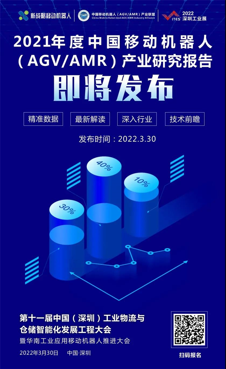 2022年3月30日,在由中國移動機器人(AGV/AMR)產(chǎn)業(yè)聯(lián)盟舉辦的《中國(深圳)工業(yè)物流與倉儲智能化發(fā)展工程大會暨華南工業(yè)應(yīng)用移動機器人推進大會》上,《2021年度中國工業(yè)應(yīng)用移動機器人(AGV/AMR)產(chǎn)業(yè)發(fā)展研究報告》將正式對外發(fā)布,敬請期待!