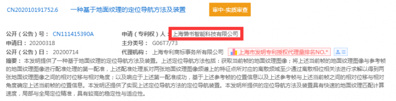 新戰(zhàn)略移動機(jī)器人產(chǎn)業(yè)研究所通過專利檢索發(fā)現(xiàn),目前該導(dǎo)航方式為發(fā)明專利,主要專利人為合肥井松自動化科技有限公司與上海懶書智能科技有限公司所有,發(fā)明人均為劉詩聰。