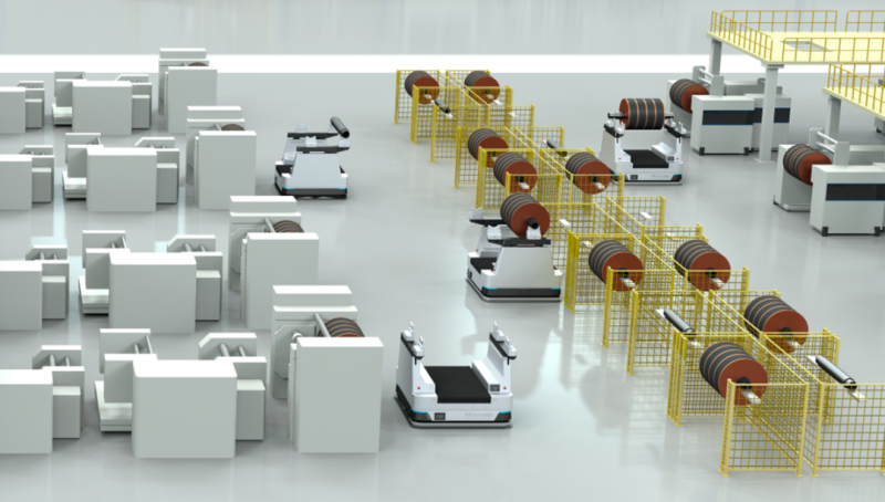 國內(nèi)某鋰電池制造龍頭企業(yè)在前工序車間引入30臺極智嘉雙舉升機(jī)器人,實(shí)現(xiàn)涂布、輥壓、模切等工序3噸重物料的自動(dòng)搬運(yùn)。