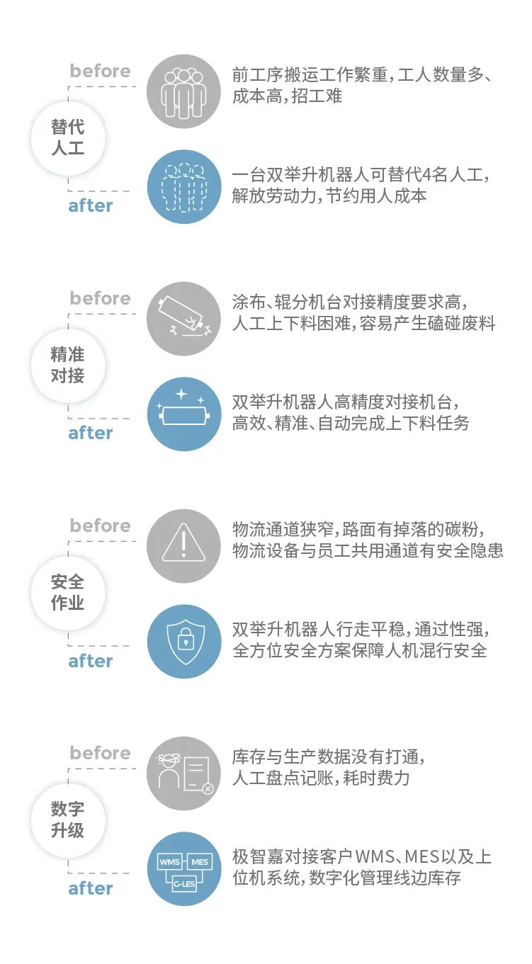 極智嘉雙舉升機(jī)器人得到了客戶的充分認(rèn)可和項(xiàng)目實(shí)例驗(yàn)證,為電芯前工序智能化升級提供了強(qiáng)力動(dòng)能!